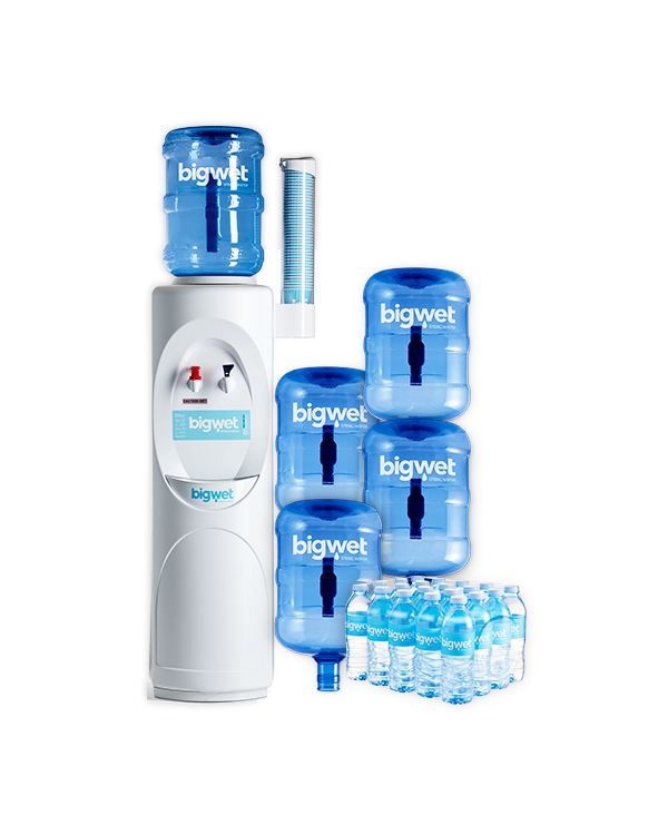 Rent a free-standing water cooler for just $69 + GST for one year and receive 4 x 15L Water bottles, 1 x Big Wet 500ml slab, Cup Holder & Sleeve of Cups absolutely FREE!